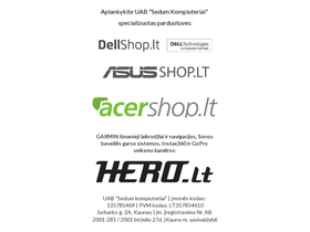76%uab "sedum kompiuteriai" valdo specializuotą dell gamintojo e-parduotuvę dellshop.lt, asus gamintojo prekių - asusshop.lt, acer kompiuterių acershop.lt ir laisvalaikio bei ekstremalaus sporto prekių, bei veiksmo kamerų gopro ir išmanių laikrodžių gaintojo garmin parduotuvę - hero.lt. platus pasirinkimas ir konkurencingos kainos.