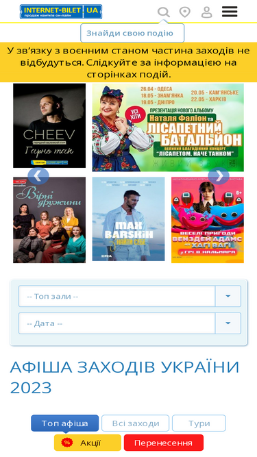 100%афіша заходів ⭐ офіційні квитки онлайн, в касах, з доставкою ✅ розклад подій на concert.ua