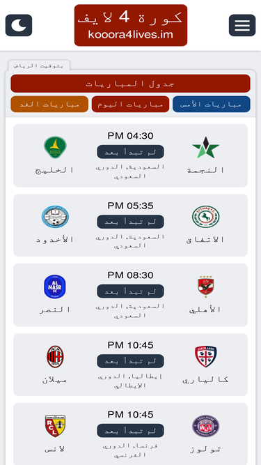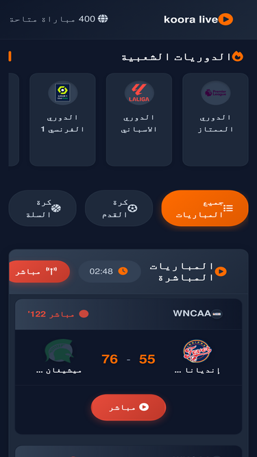 45%كورة لايف - Koora Live و كورة 4 لايف - Koora4Live منصة رياضية مميزة لمتابعة مباريات كرة القدم بث مباشر بجودة عالية، مع تغطية لحظة بلحظة، نتائج، مواعيد، وأخبار الدوريات العالمية والعربية.