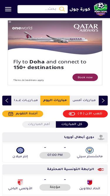 94%كورة جول موقع رياضي يقدم مباريات اليوم لحظة بلحظة، نتائج فورية، جداول الدوريات، وأخبار كرة القدم العربية والعالمية كوره جول kooragoal. تابع كل ما يخص فرقك المفضلة أولاً بأول.