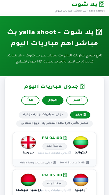 100%يلا شوت | yalla shoot | مشاهدة مباريات اليوم بث مباشر جوال يلاشوت الجديد بدون تقطيع yallashoot جدول أهم المباريات عبر موقع يلا شوت لايف yalla shoot.