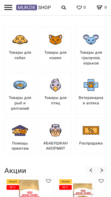 огромный выбор товаров для животных: сухие корма для кошек и собак, консервы, витамины и средства по уходу за питомцами. только высококачественные товары, низкие цены и быстрая доставка.