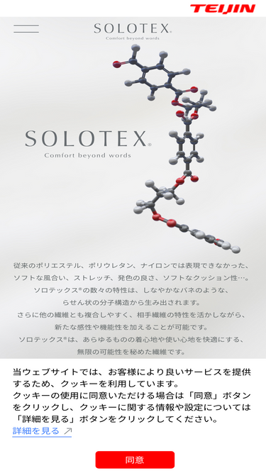 85%帝人フロンティア株式会社が運営するソロテックス® -SOLOTEX®- ブランドサイト。無限の可能性を秘めた繊維「ソロテックス®」の魅力や商品情報を発信します。