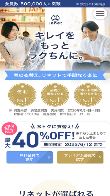 84%【インボイス対応】請求書払い(掛け払い)可。初期費用0円。ユニフォーム、作業着など1点から大量まで全国集荷・配送。面倒な契約手続き不要、Webから今すぐ申し込み可能。最短2日仕上げの法人クリーニング Lenet〈リネット〉。