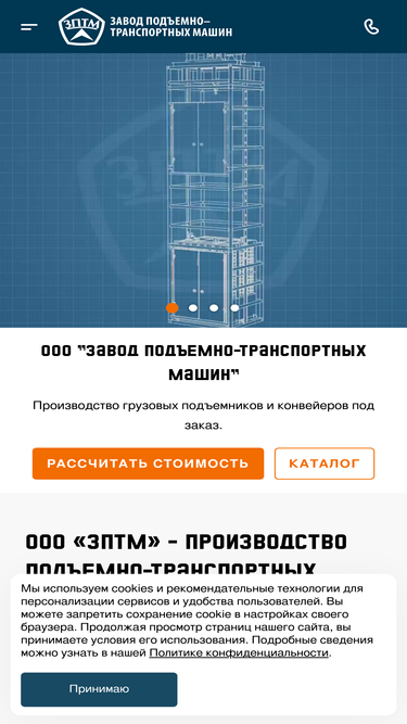 91%Компания ЗПТМ занимается производством грузовых подъемников лифтов в Москве, России и СНГ. Телефоны фирмы, адрес, группа Вконтакте, обратная связь.