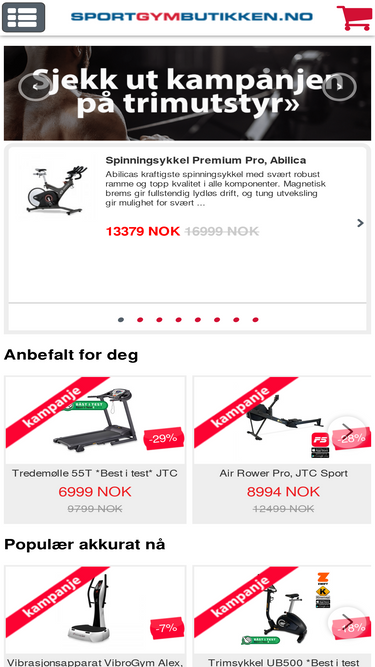 91%Hos Sportgymbutikken.no finner du treningsapparater, treningsklær og treningsutstyr som bl.a tredemøller, crosstrainere, spinningsykler, trimsykkel, stepmaskin, romaskin, multigym,
