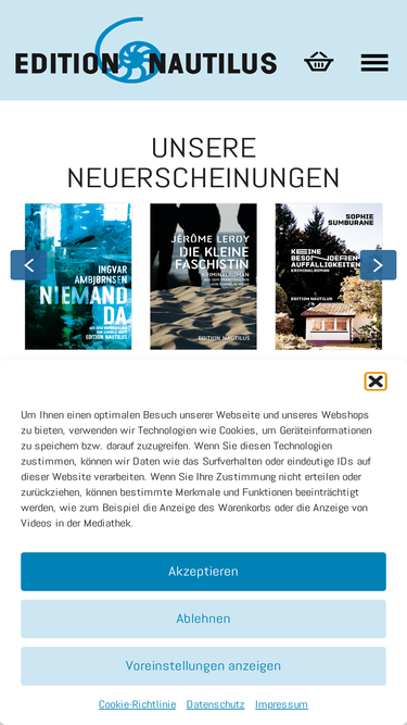 77%Edition Nautilus Katharina PicandetLektorat und Lizenzenlektorat@edition-nautilus.de Franziska OttoPresse und Veranstaltungen Belletristik/Krimipresse@edition-nautilus.de Timo SchröderPresse und Veranstaltungen Sachbuchpresse@edition-nautilus.de Katharina BüngerVertriebvertrieb@edition-nautilus.de Klaus VoßHerstellung Kontaktformular Kontakt Edition Nautilus GmbHSchützenstraße 49 aD – 22761 HamburgGermany Tel.: 0049 40/721 35 36Fax: 0049 40/721 83 99info@edition-nautilus.de PRAKTIKUM Wir bieten regelmäßig ein zweimonatiges allgemeines Verlagspraktikum an, das einen Einblick in alle Arbeitsbereiche eines Buchverlags bietet: Lektorat, Rechte/Lizenzen, Presse, Vertrieb, Veranstaltungen und Herstellung. Aktuell ist unser Praktikumsplatz für April/Mai 2027 und spätere Zeiträume noch frei…