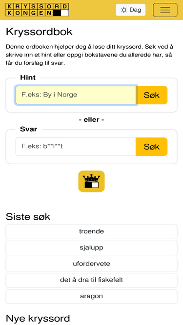 92%Er du en kryssordelsker er denne siden din beste venn! Finn svarene i kryssordet ditt, enkelt og kjapt!