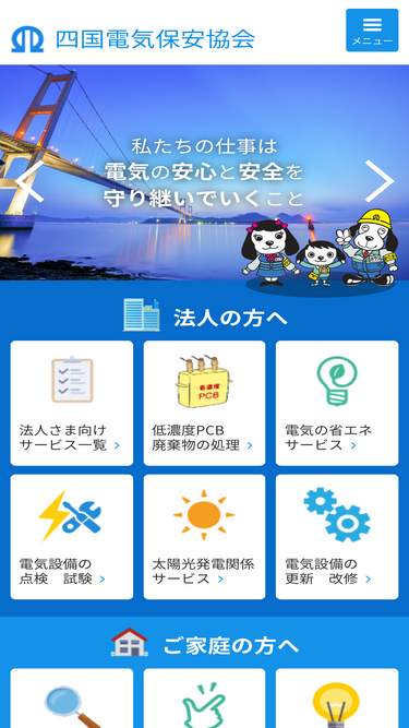 87%「信頼の技術力」「緊急時の機動力」「豊富な経験と実績」でお客さまのニーズに誠実・的確にお応えする四国電気保安協会です。