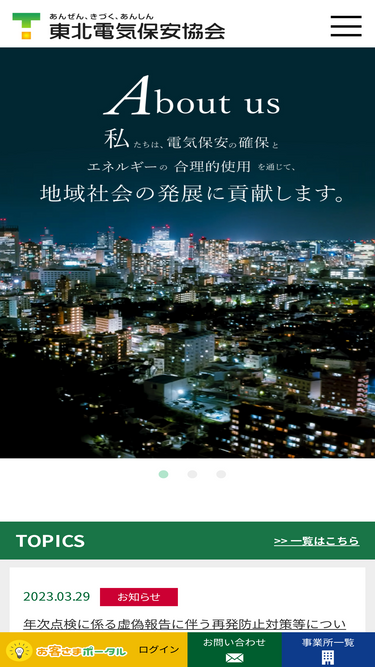 100%東北電気保安協会は東北を中心に電気のサポート業務などを行っています。電気を正しく安心安全にお使いいただくために、電気保安に関する情報や協会情報、サービス案内、講習会などをご紹介しています。