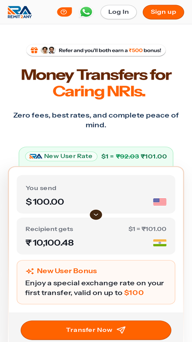 87%Send money online instantly with Remit2Any. Fast, secure, and affordable money transfer service to over 100+ countries worldwide.