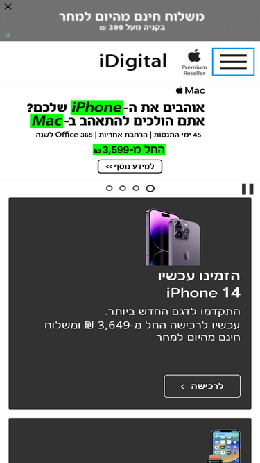 90%כל מוצרי apple עכשיו ב- idigital. אנחנו מזמינים אתכם להנות מחווית קנייה ברמה גבוהה וליווי צמוד מהמומחים של אפל בישראל. כל מוצרי אפל כבר מחכים לכם בפנים.