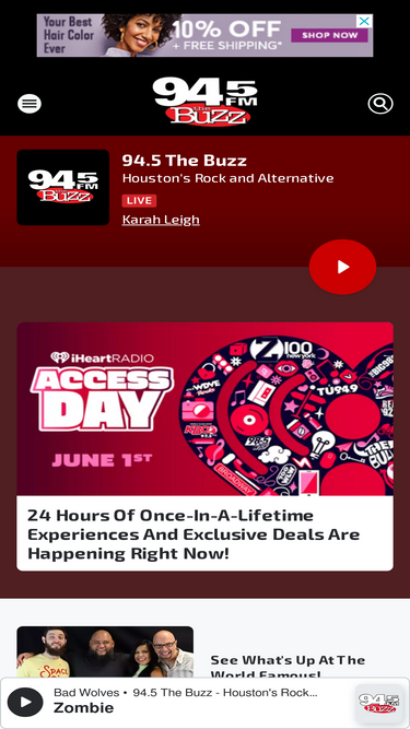 92%94.5 The Buzz is Houston's Rock and Alternative with big personalities like the Rod Ryan Morning Show, Theresa, A.D., Karah Leigh and more playing artists such as Muse, Beck, Twenty One Pilots, Foo Fighters, Theory of a Deadman, Cage the Elephant and more!