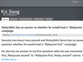 83%The most telling moment for the “unity government” came on Sunday night, when a crowd of a few thousand at a dinner banquet applauded DAP MP Lim Lip Eng’s announcement that Pakatan Harapan had lost…