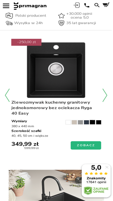 85%Zlewozmywaki granitowe i baterie kuchenne producenta Primagran to rozwiązania najwyższej jakości. Sprawdź!
