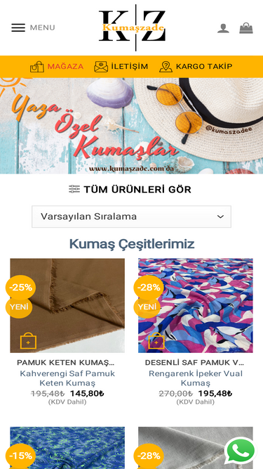 100%Tüm kumaşlar, en iyi fiyatlarla, birçok renk seçeneğiyle, hızlı kargolama ve avantajlı ödeme seçenekleriyle Kumaşzade.com 'da. Fırsatı Kaçırmayın!
