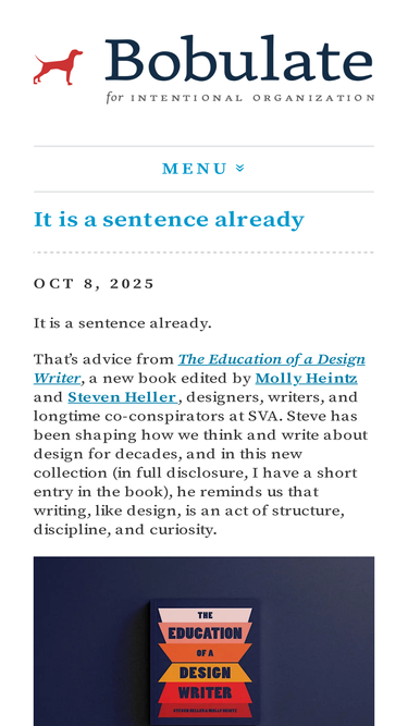 46%It is a sentence already. That’s advice from The Education of a Design Writer, a new book edited by Molly Heintz and Steven Heller, designers, writers, and longtime co-conspirators at SVA. Steve ha…