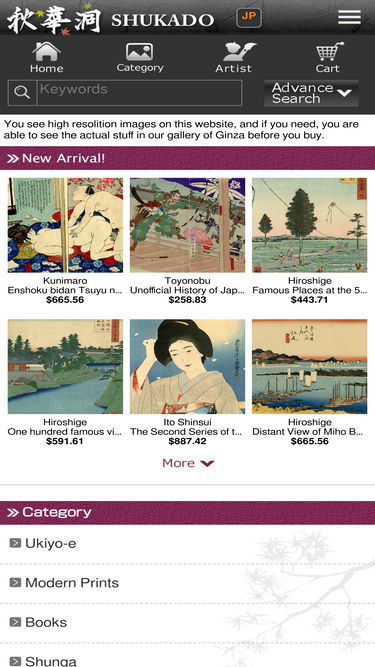 100%shukado sells ukiyoe, japanese woodblock prints, shin hunga and japanese paintings. you can buy them both online shop and at our gallery located in ginza, tokyo.