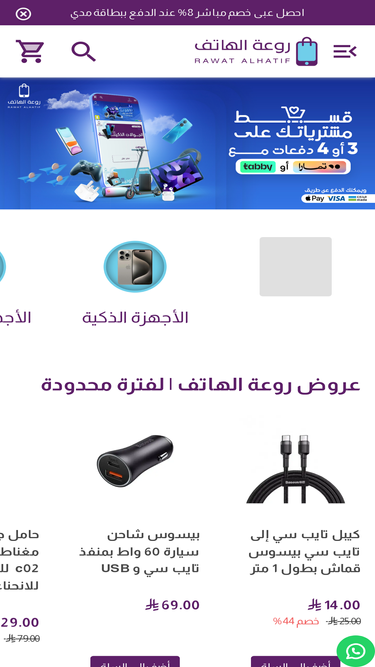 90%متجر حلول التقنية والاتصالات يوفر جوالات وأجهزة إلكترونية مع خيارات تقسيط للآيفون والسامسونج عبر تابي وتمارا حتى 12 شهر بدون فوائد وبدون كفيل مع شحن داخل السعودية