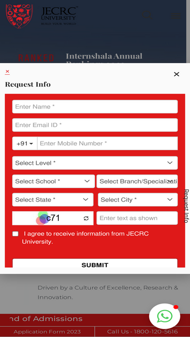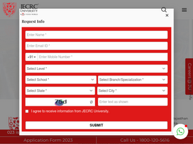 80%JECRC University JECRC University,Plot No. IS-2036 to IS-2039, Ramchandrapura Industrial Area, Vidhani, Sitapura Extension, Jaipur-303905. Toll Free No 1800-120-5616 Email admission@jecrcu.edu.in Contact Details Admission Enquiry Mr. Manish Sharma (Director Admissions)Email Id: director.admission@jecrcu.edu.in Dr. Vaibhav Jain:-Email Id: admission@jecrcu.edu.inToll Free No : 1800-120-5616Mob No : +91-9116642285 Prof. Prashant Sahai SaxenaDirectorate of Executive Education:Mob No : +91-9116107504Email Id: admissions.dee@jecrcu.edu.in Ph.D. Enquiry...