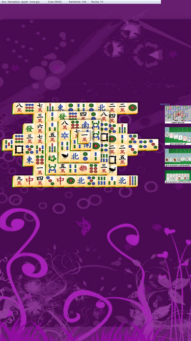 92%gra mahjong z dużymi kamieniami, licznymi układami oraz ustawieniami graficznymi.
