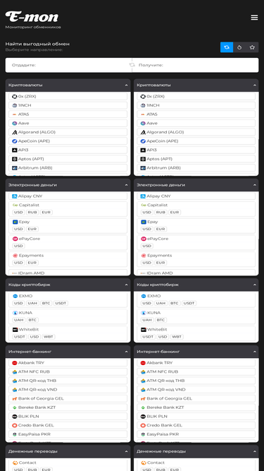 100%the exchangers monitor of trust digital and crypto-currencies exchangers. the monitoring permanently parse an exchange rates from best e-currency exchange sites.