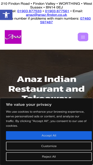 100%Whether you choose to dine in or have a takeaway, you can be sure that the Anaz Indian Restaurant and Takeaway use only the finest ingrediants.