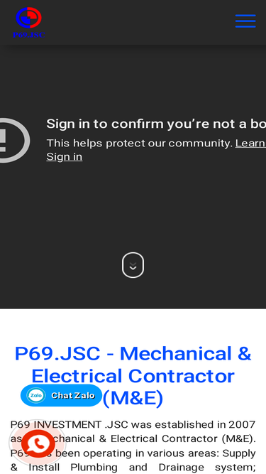 83%P69 - Nhà Thầu Cơ Điện (M&E) - Công ty Cổ phần Đầu Tư P69 là đơn vị tổng thầu cơ điện, thi công cơ điện cho các doanh nghiệp M&E hàng đầu tại Việt Nam