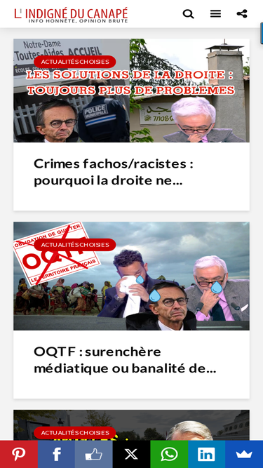 N'hésitez pas à vous inscrire pour recevoir de temps en temps un mail sur les derniers articles mis en ligne sur le site. Ne vous inquiétez pas, vous ne serez pas inondés de mails, vos adresses ne seront pas revendues à un tiers, bref, vous êtes en sécurité ici. L'Indigné du Canapé