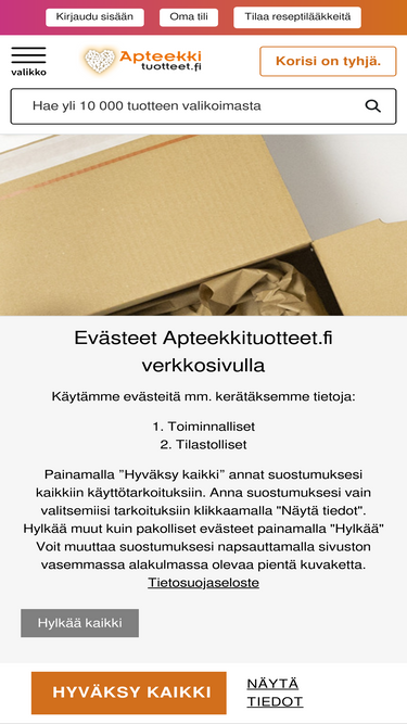 58%Apteekkituotteet.fi verkkoapteekki on apteekkisi verkossa. Nopea toimitus alkaen 0 € ja yli 10 000 tuotteen valikoima apteekin tuotteita juuri sinulle.