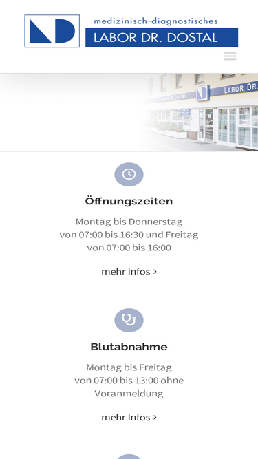 95%Das Labor hat Montag bis Freitag für Sie geöffnet, mit Ausnahme von gesetzlichen Feiertagen sowie dem 24.12. und 31.12. Montag bis Donnerstag von 07:00 bis 16:30 und Freitag von 07:00 bis 16:00 Montag bis Freitag von 07:00 bis 13:00 ohne Voranmeldung Medizinische und wissenschaftliche Untersuchungen, in Zusammenarbeit mit der österr.