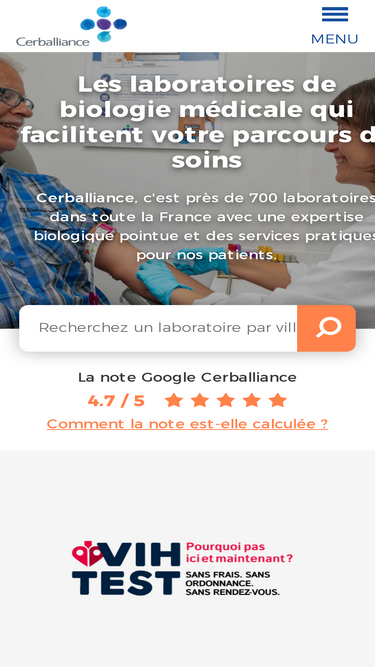 82%cerballiance, c'est près de 700 laboratoires d'analyses médicales dans toute la france pour faciliter votre parcours de soins.