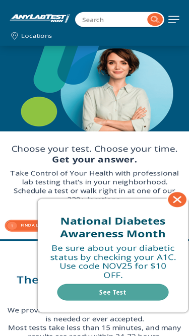 71%With ANY LAB TEST NOW®, getting a lab test is easy. Get in and out in roughly 15 minutes and have tests available in 24-72 hours. Find a location near you!