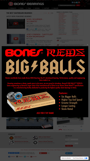 81%manufacturer & distributor of high performance and competition skateboard bearings since 1983. manufacturer of bones ceramic bearings, bones swiss bearings, bones swiss six bearings, bones reds bearings, bones speed cream lubricant, and accessories. the best skateboard bearings.