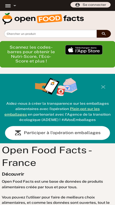 82%Une base de données collaborative, gratuite, libre et ouverte d'ingrédients, de valeurs nutritionnelles et d'informations sur les produits alimentaires du monde entier