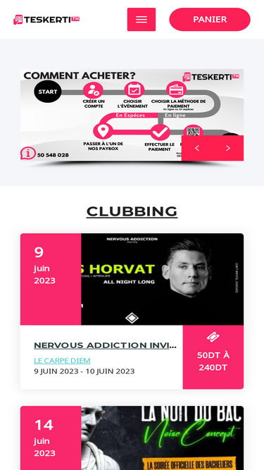 74%Concerts, Festivals, Expositions, Sport ▻ Réservez vos places sur Teskerti ! Le n°1 du E-ticket en Tunisie - Paiement 100% sécurisé.