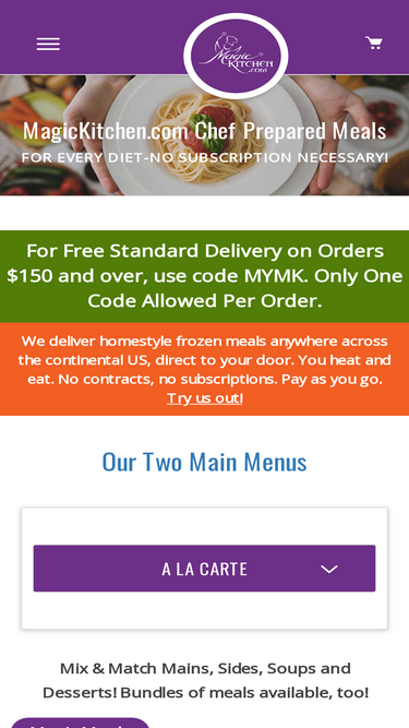 90%Order freshly prepared meals delivered to your door! Magic Kitchen's healthy, delicious frozen meals are quick to prepare & ideal for seniors and busy families.