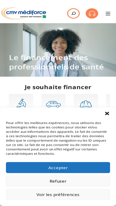91%CMV Médiforce, propose depuis plus de 45 ans des solutions de financements réservées aux professions libérales réglementées et de santé de santé : véhicule, matériel, travaux, trésorerie, développement d'activité
