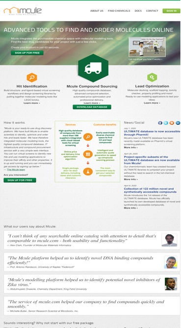 69%Mcule.com is the online drug discovery platform. It offers a unique solution for pharma and biotech companies by providing molecular modeling tools and the highest quality purchasable compound database.