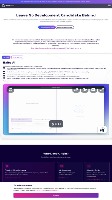 88%We are announcing the Deep Origin data hub, an expansion of our R&D platform that seamlessly integrates data management, scalable data processing and AI-driven analysis. In the Deep Origin data hub, researchers can design experiments, create protocols, write experimental notes, upload raw data, perform complex analyses, create interactive visualizations, generate publication ready figures, and collaborate all in a single place. Free access to our beta is available to the first 200 users*.
