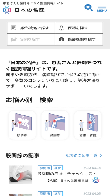 85%世田谷人工関節・脊椎クリニックは、膝や股関節、首腰(脊椎)の痛みや病気に悩んでいる方、痛み止め薬やヒアルロン酸注射が効かず人工関節手術や脊椎・脊髄の手術を検討される方のための整形外科です。他の医療機関で手術を断られた方もあきらめず、お気軽にご相談ください。当院は東京都世田谷区エリアにある膝・股関節・脊椎・脊髄(首腰)に特化した整形外科です。