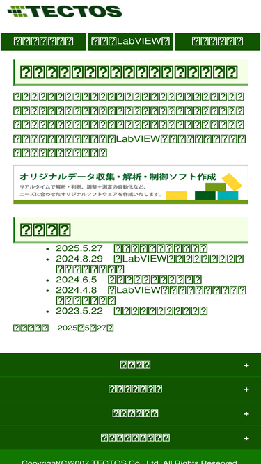 58%株式会社テクトスのウェブサイトです。計測、制御システムの設計、製作から、labviewを用いたソフトウェア開発を行っております。研究から開発、検査、製造プロセスまで幅広い分野で最適なシステムを提供します。