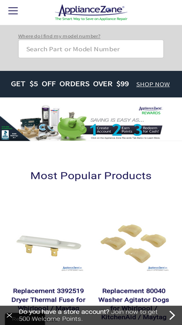 76%Description APN285753A Model List 13 Reviews Replacement motor coupler used for some Admiral, Amana, Crosley, Estate, Kenmore, KitchenAid, Maytag, Roper, and Whirlpool washer models. Directly Replaces: 285753A, 21003, 280152, 285140, 285743, 285753, 285753AVP, 3352470, 3363664, 3364002, 3364003, 62672, 62693, 661560, 80008, 8559748, ER285753, TJ285753, 1195967, AP3963893, AH1485646, EA1485646, EAP1485646, PD00002353, PS1485646. Features: Attaches the transmission to the drive-shaft of the motor. If the washer is overloaded, the motor coupling will fail in order to protect the motor and transmission. Standard duty with metal insert to prevent stripping. Fits direct drive (belt-less) washers. Includes (1) Motor Coupler Assembly. Specifications: Color: Black / Off-White. Material: Rubber / Plastic / Metal. Assembled Dimensions: 2"L x 1-1/4"W x 2"H. Type your model number into the box to filter down the compatible models. How do I find my model number? Don't see your model listed? Complete this form for help with finding the right part. 13 Reviews 4 coupler Posted by chester j murnane on 22nd Nov 2021 works well 5 Excellent product Posted by qzhouse on 8th Jun 2018 Fit perfectly on washer. 5 High quality, great prices Posted by Jojo on 24th Apr 2018 I am a returning customer. To date I have had great experiences with this site. Good quality parts, low prices, correct parts the first time and prompt deliveries, I am a very satisfied with thier services. 5 Tub not spinning Posted by Al on 5th Apr 2018 Installed along with the clutch. Made for easy install. 4 Good Price Posted by Anonymous on 13th Mar 2018 Part worked well. Not very hard to replace 5 Replacement part Posted by David Dudley on 8th Jan 2018 Received the part and it is working just fine. Good fit. 4 Washer Motor Coupler Posted by Steve Ritter on 16th Dec 2017 I am not sure if it is intentional to get a tight fit, but there were ridges on the flat areas of the bore on both