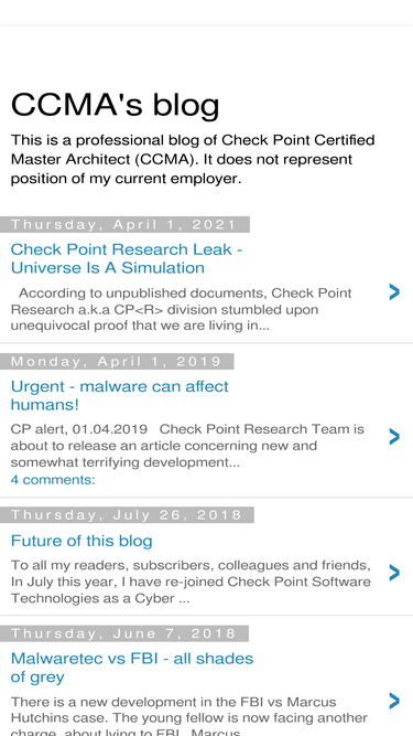 This is a professional blog of Check Point Certified Master Architect (CCMA). It does not represent position of my current employer.