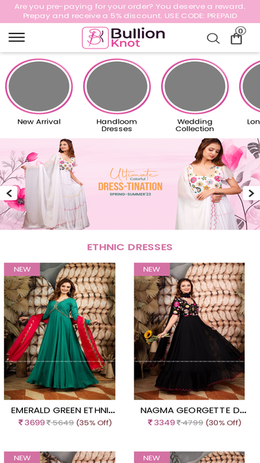 50%Find exquisite ethnic dresses for women this wedding season at BullionKnot. Surprise your partner with a designer ethnic gown.