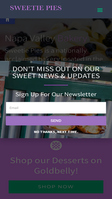 82%Sweetie Pies Bakery is an artisan bakery located in Downtown Napa and specializes in cakes, pies, pastries, and more. Join us for breakfast or lunch.