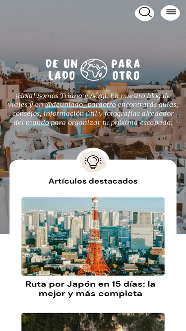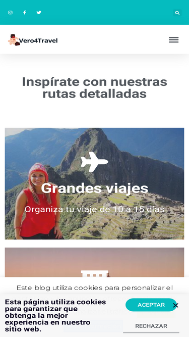 91%Inspírate con nuestras rutas detalladas Inspírate con nuestras rutas detalladas Grandes viajes Organiza tu viaje de 10 a 15 días Rutas detalladas por Japón, Tailadia, Perú, Panamá, Costa Rica … Ver todas las rutas Escapadas ... Leer más