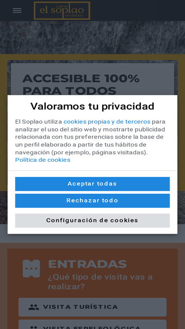 90%situaciónEl territorio El Soplao se localiza entre los municipios de Herrerías, Valdáliga y Rionansa, en lo alto de la Sierra de Arnero, a una altitud de 540 m. El entorno constituye un enclave con espléndidas y profundas vistas sobre la Sierra de Peña Sagra, Los Picos de Europa, el valle del r