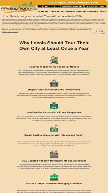 99%discover san diego's inner soul on walking tours of its unique urban neighborhoods. we explore the cozy cafes, one-of-a-kind shops and architectural details, learning history and local trivia as we walk.