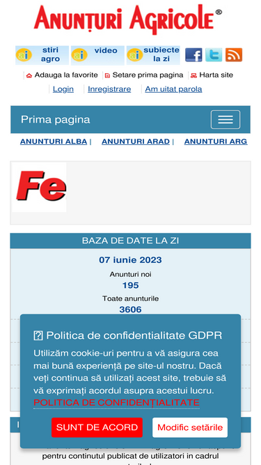 56%Anunturi-agricole.ro, primul site de anunturi din agricultura, va ofera ocazia de a cumpara si vinde utilaje agricole, tractoare si combine, animale si pasari, grau, porumb si alte seminte, terenuri si ferme.